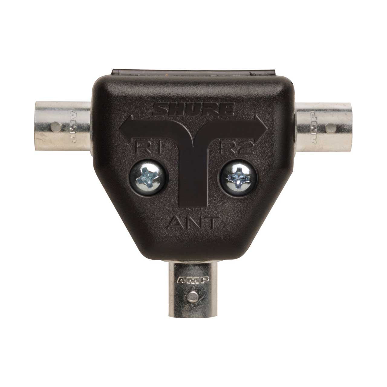 The Shure UA221 Antenna Splitter/Combiner Kit includes two adapters that can be used as one-input, two-output or two-input, one-output passive antenna splitter/combiners for UC4, SLX4, ULXS4, ULXP4, U4S, U4D, UR4S and UR4D receivers.