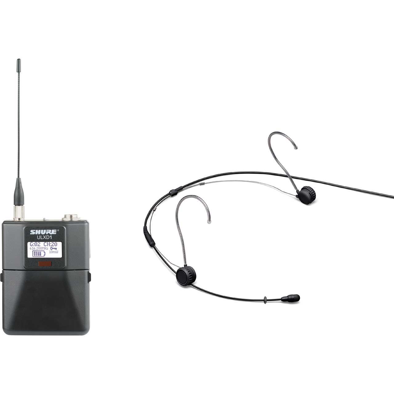 • 1x Shure ULXD1 Digital Bodypack Transmitter and TwinPlex Black Headset Mic Kit with TA4M Connector – 470-536 MHz