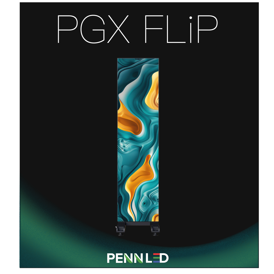 The Penn LED PGX FLiP LED poster is an all new product that is quick to setup, easy to use, and is flexible for many uses. Perfect for Churches, retail spaces, schools, trade shows, events and more. PGX FLiP is versatile and easy to use.